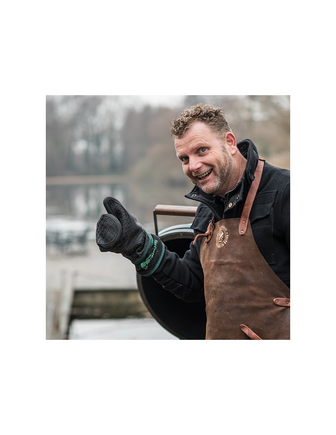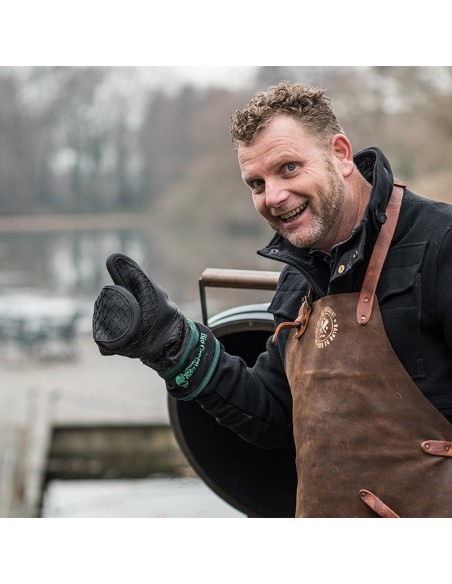 - Kraštas ir vidus pagaminti iš minkšto medvilnės ir poliesterio mišinio. Silikoninė pirštinė atspari temperatūrai iki 232 °C.