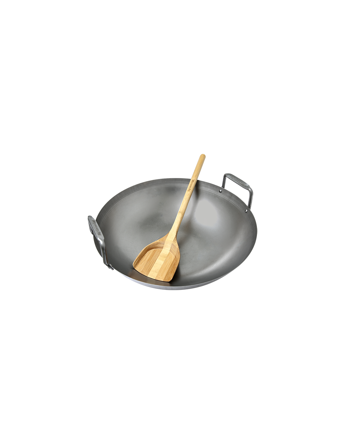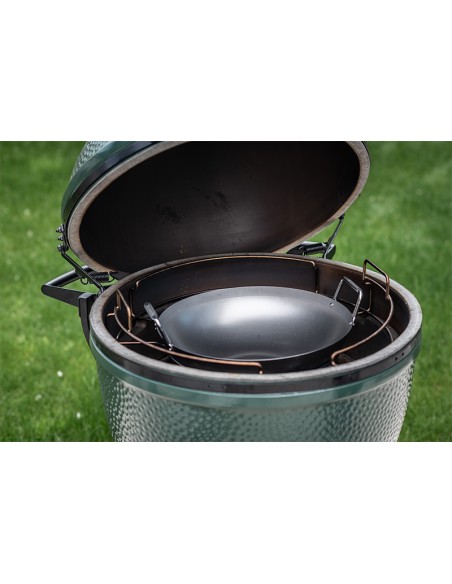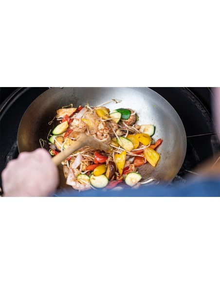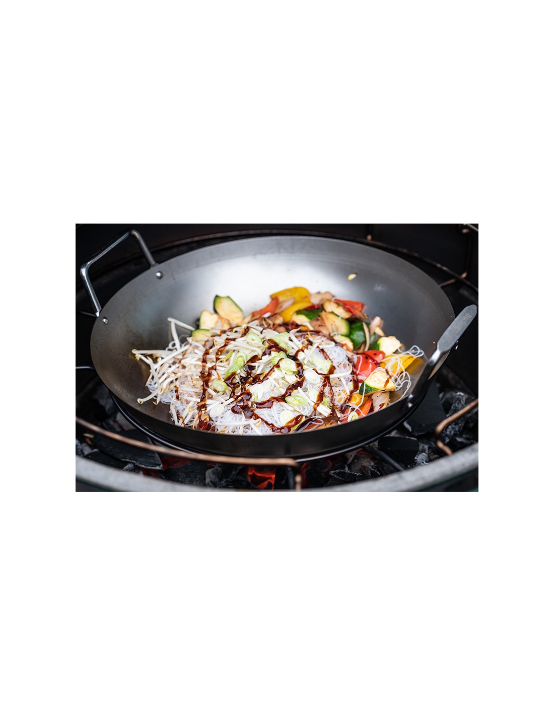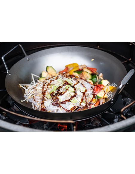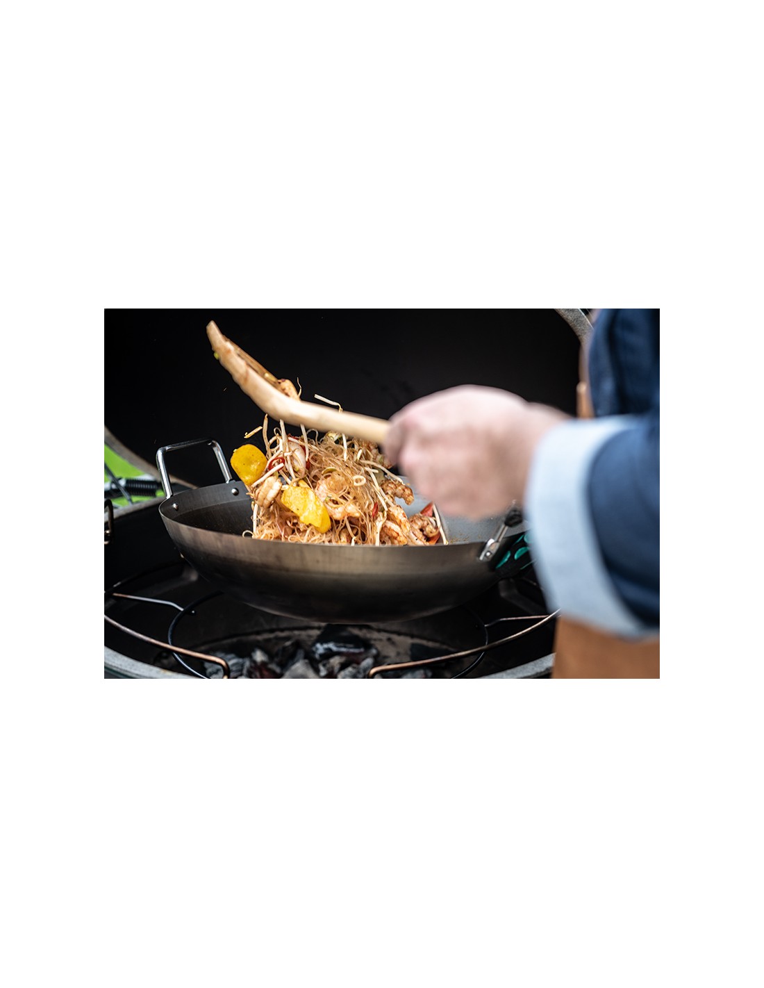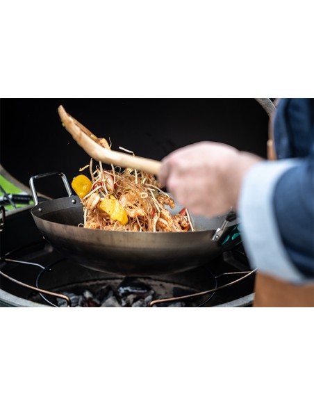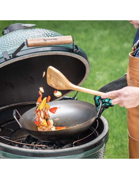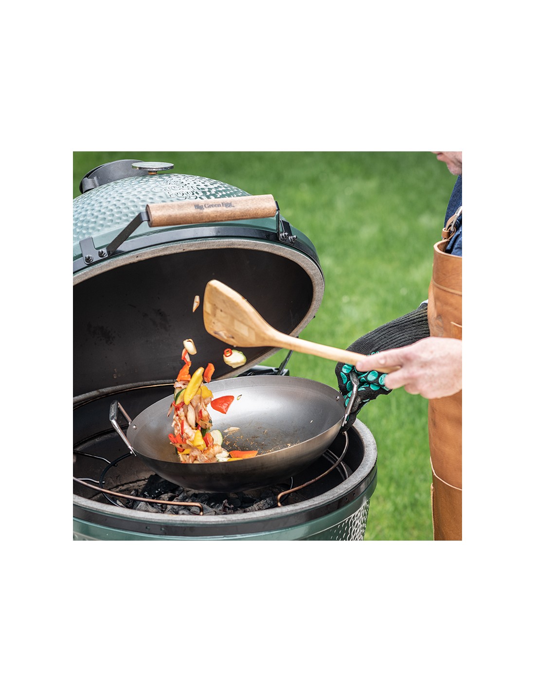 - Big Green Egg kepsninės labai universalios – jose galima naudoti ir wok keptuves. Turėdami anglies plieno wok keptuvę su bambukine mentele galėsite įvaldyti bet kokį maisto gaminimo būdą. Keptuvės dugnas plokščias, todėl ją galima dėti ant bet kokio paviršiaus. Be to, ją galima suderinti su EGGspander grotelėmis. Pasiruošę kepti?