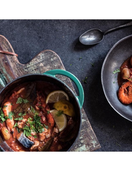 • Kas kunkuliuoja ketaus puode? Šis daugiafunkcis puodas pravers gaminant vyne troškintą vištieną, verdant sriubą, gaminant aštrų troškinį arba kepant trupininius desertus. Jį galima naudoti ir paprastoje orkaitėje, o bėgant metams jo išvaizda tik gerės. Šį dailų puodą galėsite išdidžiai statyti ant stalo. Ovalaus ketaus puodo talpa 5,2 litro, skersmuo 35cm.