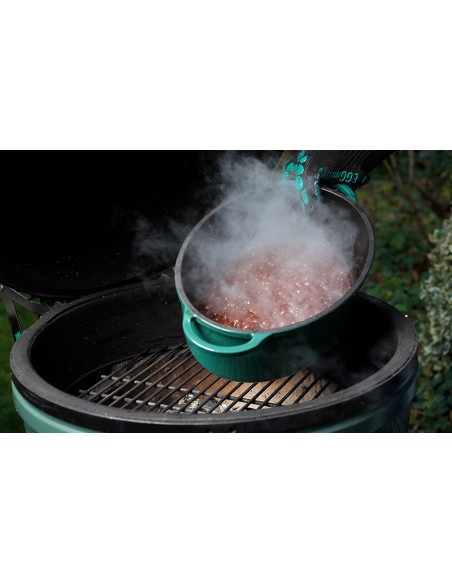 • Žalias ketaus puodas (Green Dutch Oven) – tikras Big Green Egg sunkiasvoris. Šiame emaliuotame ketaus puode galite troškinti, virti, kepti ir skrudinti. Labai universalus indas! Ketaus puodo dangtį taip pat galima panaudoti kaip negilią keptuvę arba kepimo formą pyragams ir desertams. Galima rinktis iš apvalaus arba ovalaus ketaus puodo.