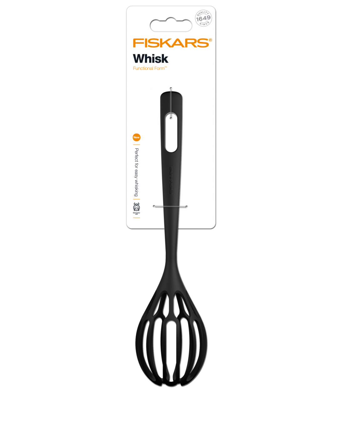- Apvalus patogus plaktuvas. Puikiai tiks maišant blynų tešlą ar gaminant omletą.