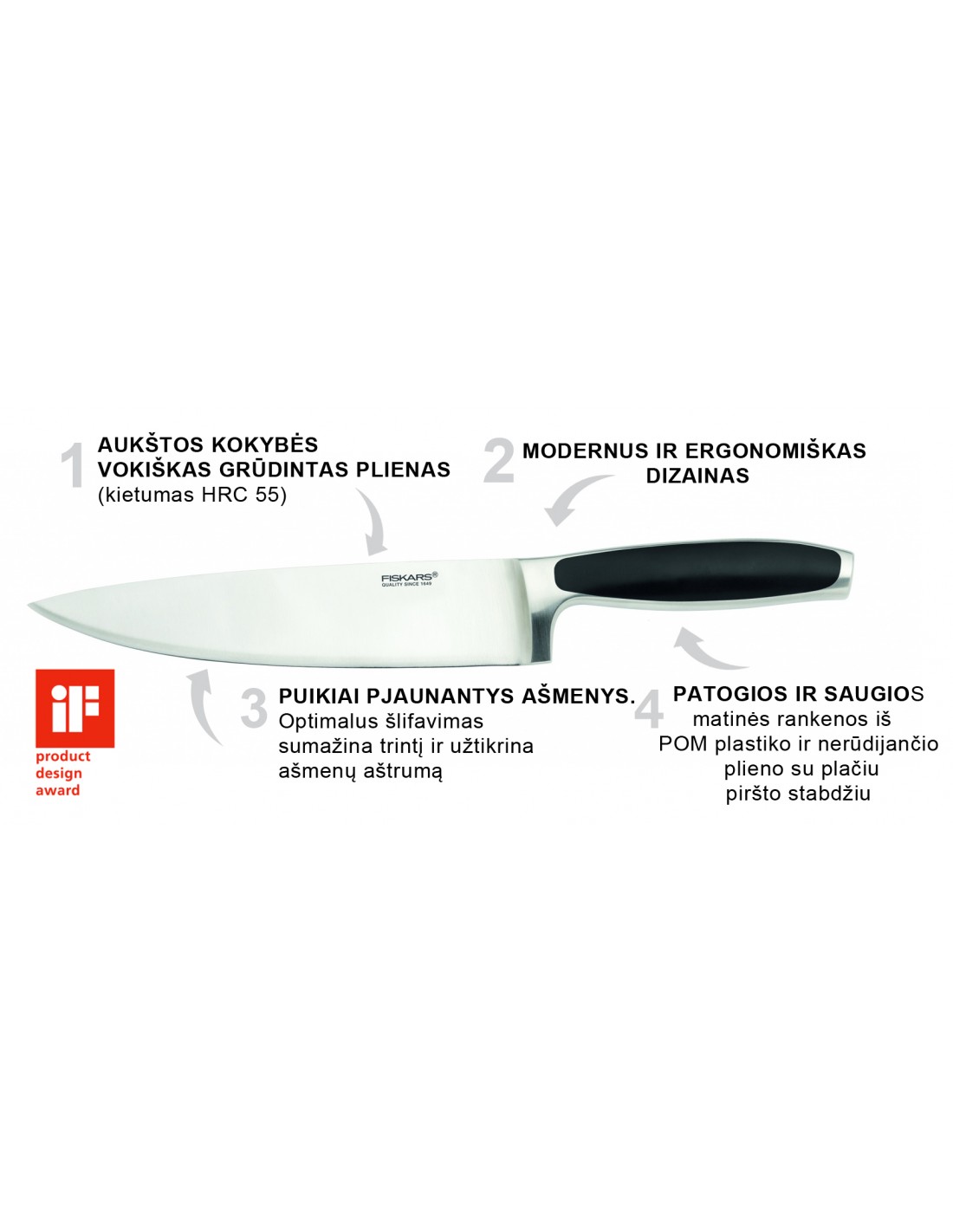 - Fiskars Royal peilių asortimentas puikiai apjungia modernų dizainą su funkcionalumu.