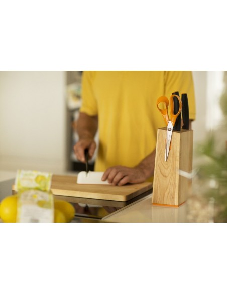 - Geležtė turi puikiai pjaunančius ašmenis, kuriuos nesunku išlaikyti aštrius naudojant Fiskars Roll-Sharp arba metalinį galąstuvą.