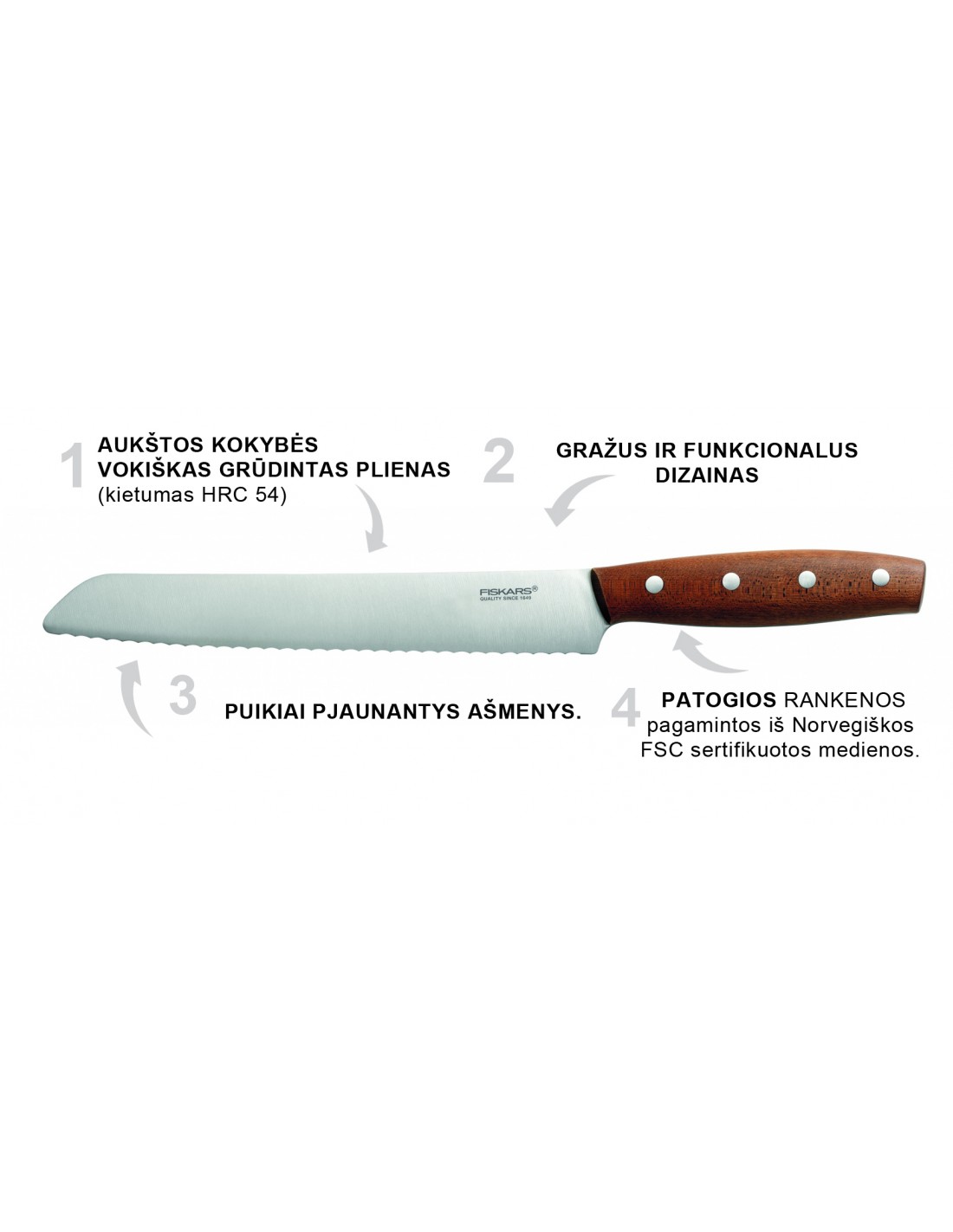 FISKARS NORR peilių linija įkvėpta skandinaviško dizaino, maisto gamybos kultūros ir funkcionalumo.